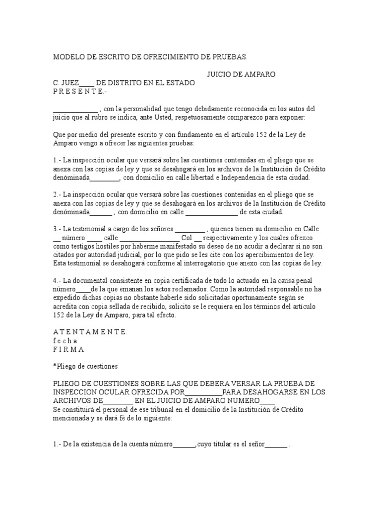 Modelo De Escrito De Ofrecimiento De Pruebas via es.scribd.com